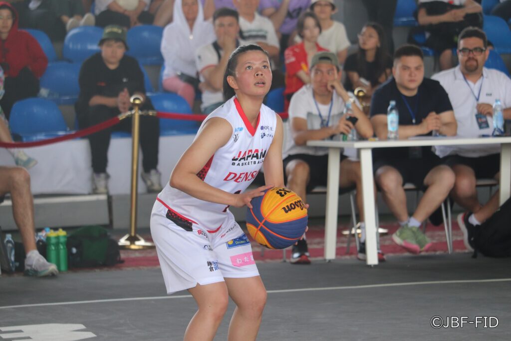 #5田中のドライブ、#1岸の2Pシュートで先行するも相手も得点を徐々に重ねて同点。その後もお互いに譲らず残り2:06で14-14の好ゲーム。タイムアウト後にインサイドを守り切れず15-18で敗戦。