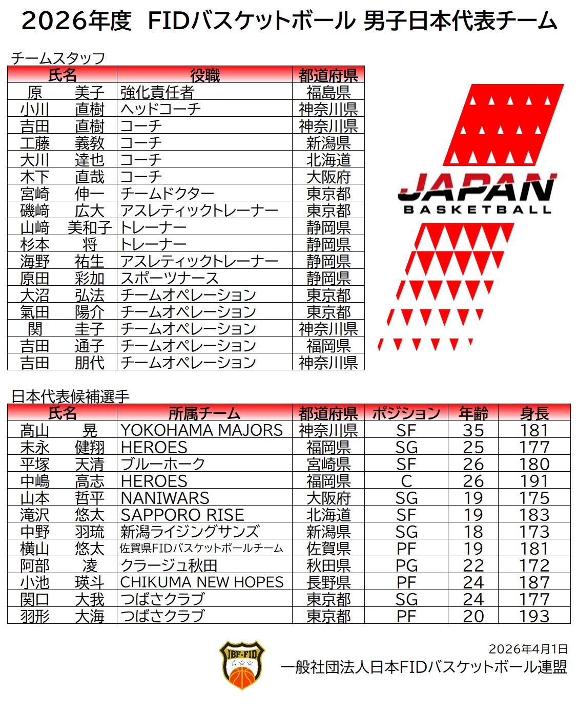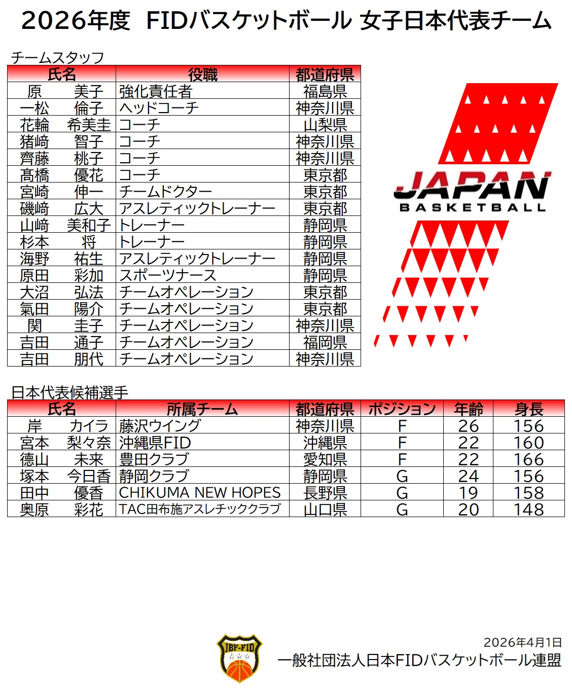 【日本代表】2026年度FIDバスケットボール日本代表チームについて