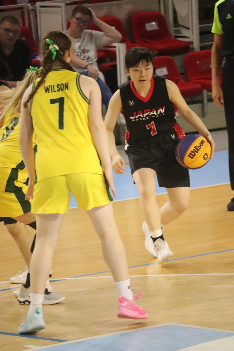 必死に全員で守り速い攻撃を続け、終盤に#5渡辺の3Pで6点をリードし後半へ